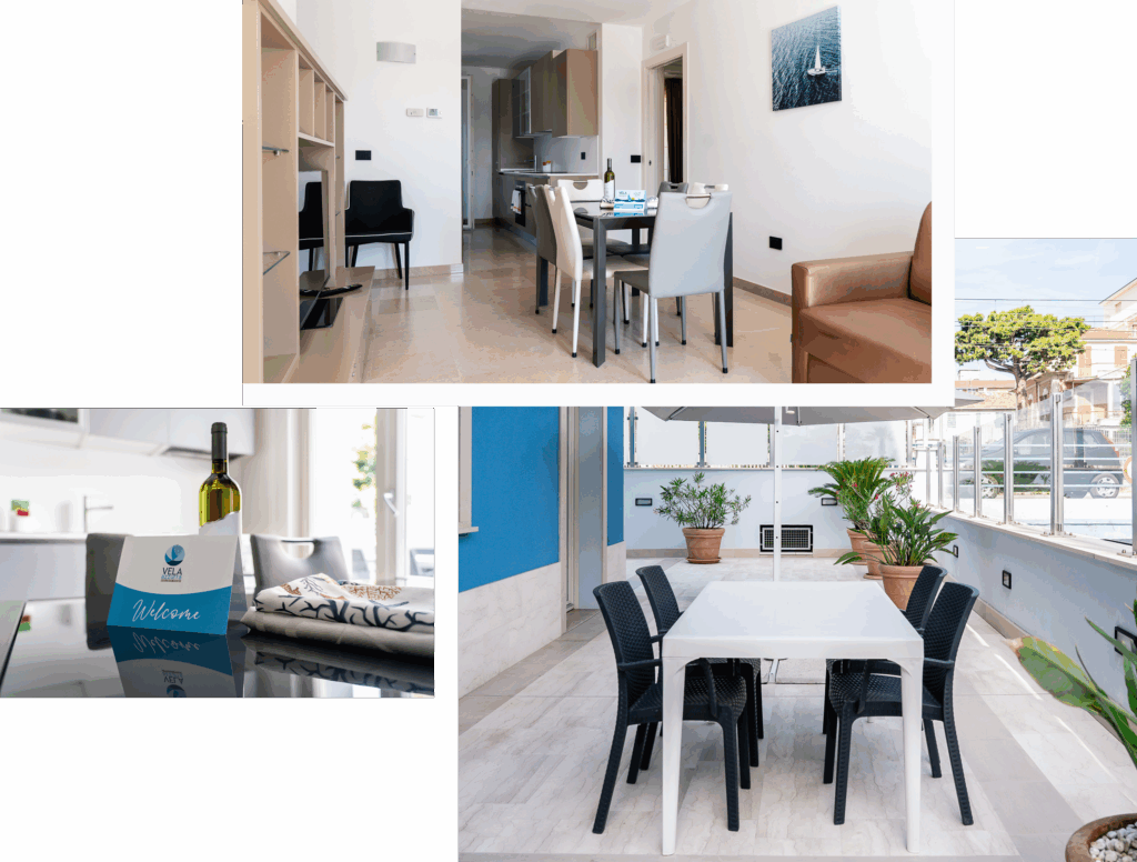 Vacanza piacevole e rilassante. La struttura è nuova e accogliente a poca distanza dal mare con spiaggia privata. L’appartamento, monolocale, è bello, pulito e climatizzato, arredato con gusto e in modo funzionale con elettrodomestici di qualità. TOP : un ampio terrazzo con vista mare con possibilità di mangiare e angolo salotto dove rilassarsi. Ottima idea di essere stati dotati prima della partenza di un codice per entrare in struttura, in appartamento e in garage. Un ringraziamento va a Dario presente ad ogni nostra richiesta. Vacanza da ripetere a Vela Azzurra !