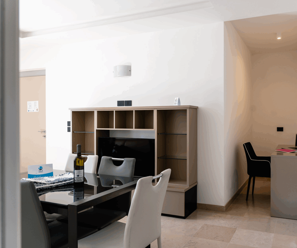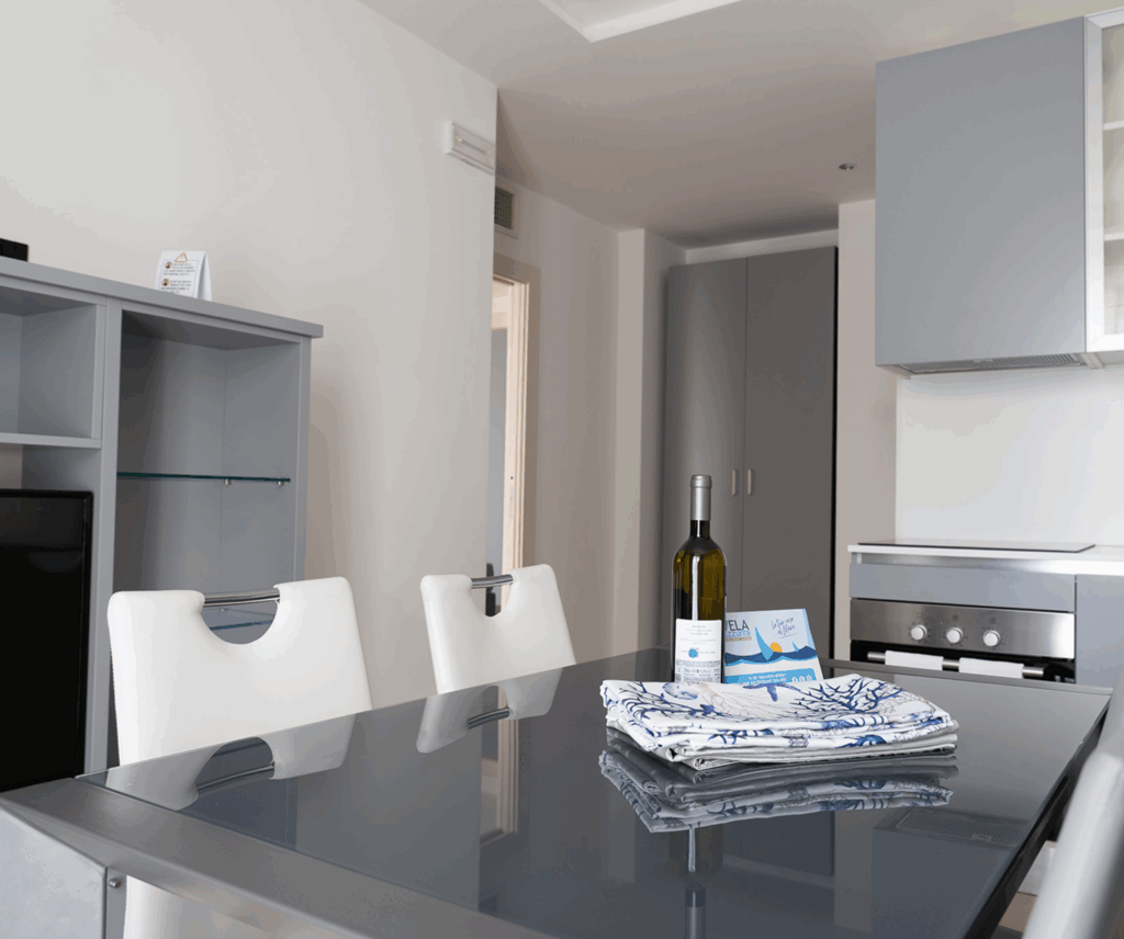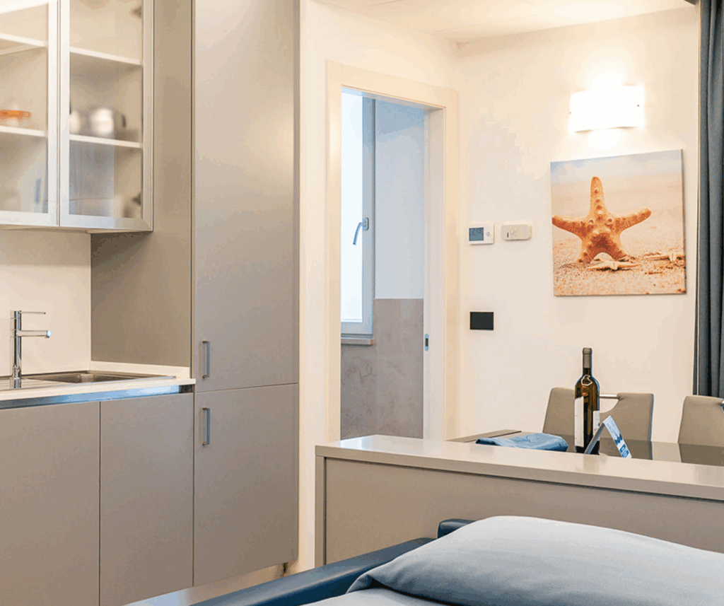 Grazie alla separazione tra zona notte e zona living, i bilocali offrono maggiore privacy e una vivibilità superiore. Perfetti anche per soggiorni prolungati, accolgono gli ospiti in un ambiente che coniuga design, funzionalità e la serenità che solo il mare sa trasmettere.